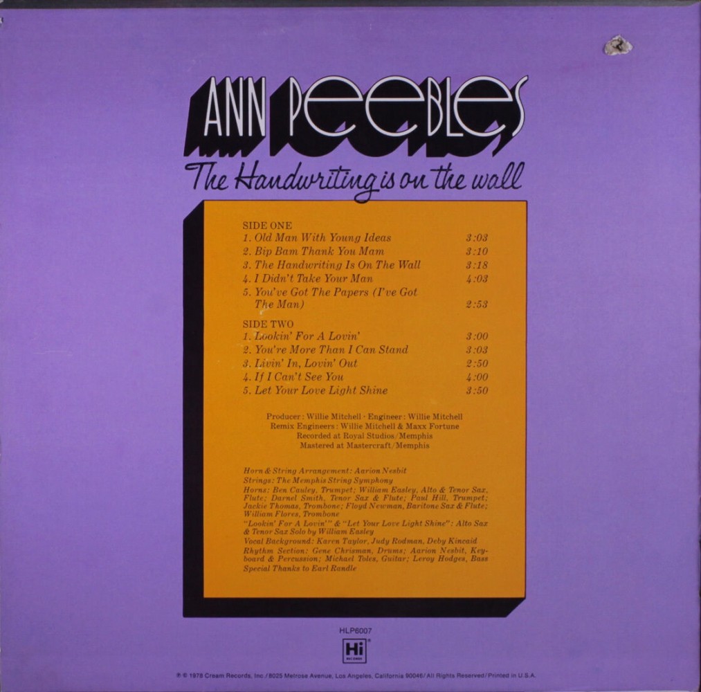 Ann Peebles 1978 The Handwriting Is On The Wall [Hi HLP 6007, HLP6007] (back)