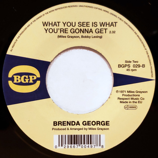 45T Brenda George 2010 I Can't Stand It (I Can't Take It No More) + What You See Is What Your Gonna